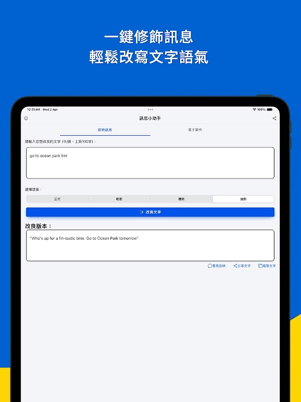 訊息小助手 - 智能優化每一句,讓你輕鬆表達,自在交流