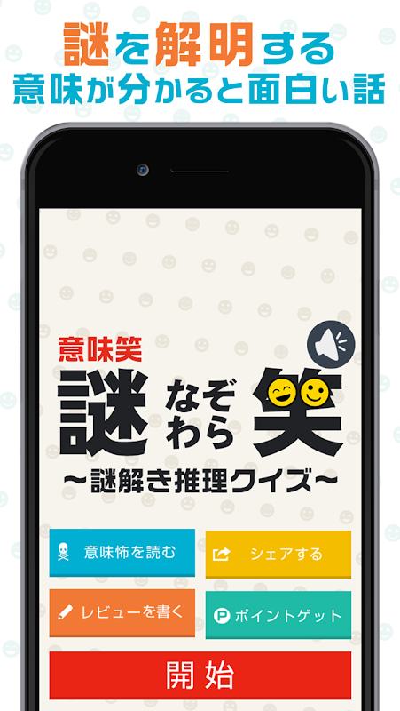 爆笑必至!!意味笑ファンの皆様お待たせしました!!意味が分かると面白い話にまつわる謎解きの時間です本アプリは自身で話の謎を解明していく、クイズ形式の意味笑です