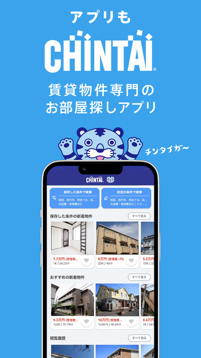 賃貸物件検索アプリ|お部屋探し・お家探しならCHINTAI