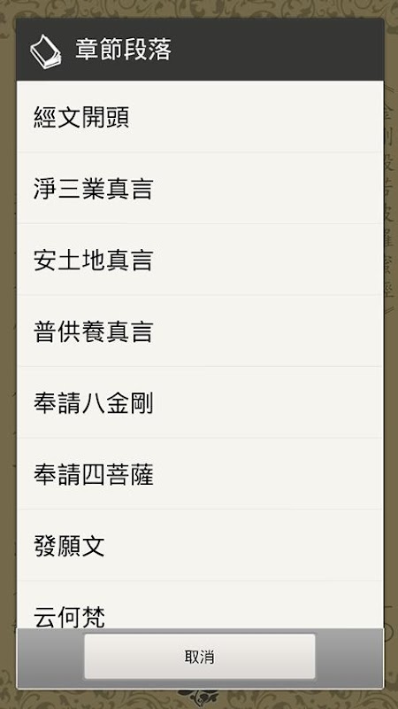 本程式提供了經咒念誦的功能,並且於每個章節經句章節細心的引導你,免除了紙本經本使用上,初發心的菩薩們常會遇到的問題,如跟不上、找不到等等的問題影響持誦的順暢。