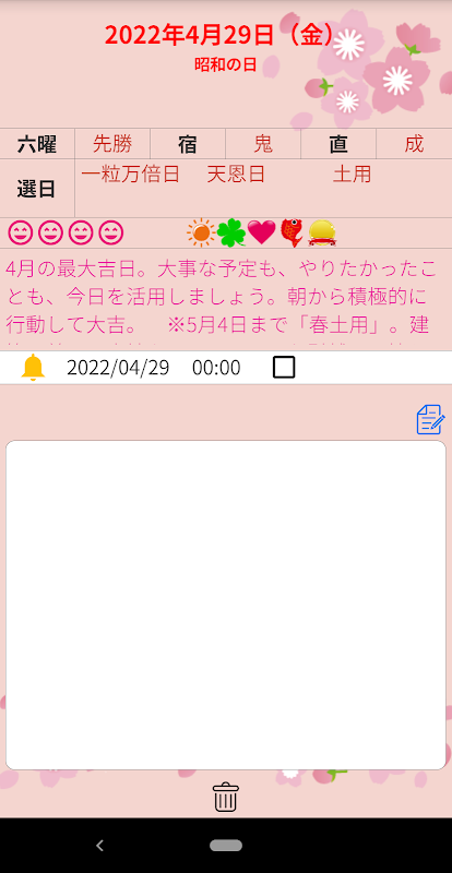 *2022年度版より、当アプリを監修しております開運暦開運方位研究所の村上氏恩が毎日の日めくりカレンダー内に解説コメントを掲載しています。その日の予定を決める際のご参考にしていただければと思います。