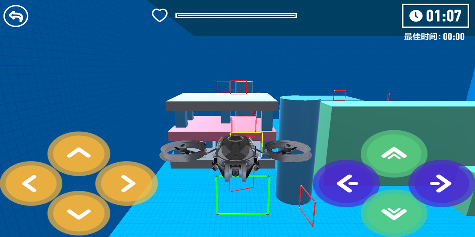 游戏是闪电无人机模拟器,玩家控制着无人机,在地图上自由穿梭。3D游戏传观一个一个障碍,非常好玩。