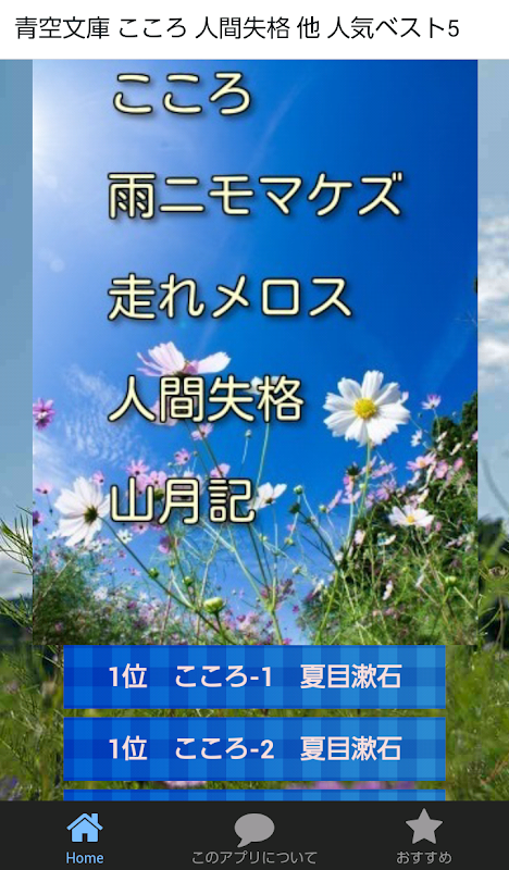 青空文庫 こころ 人間失格 他 人気ベスト5 1.0.2