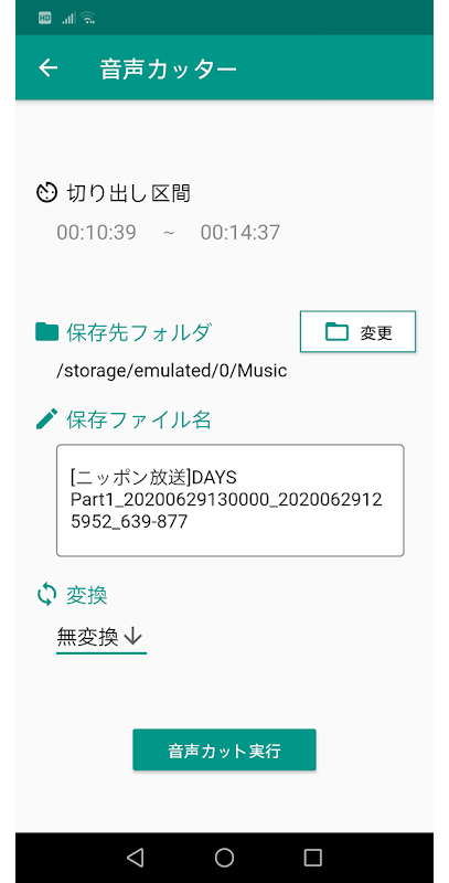 ・編集後ファイルの保存先を「Music>音声カッター」に変更