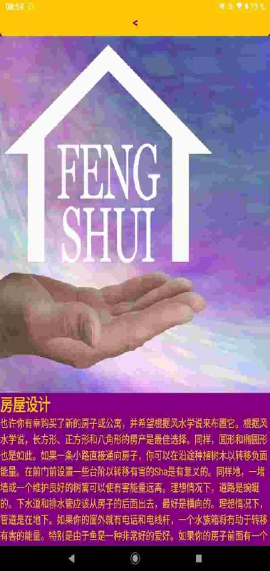 يحتوي تطبيق Feng Shui على المحتوى والميزات التالية: