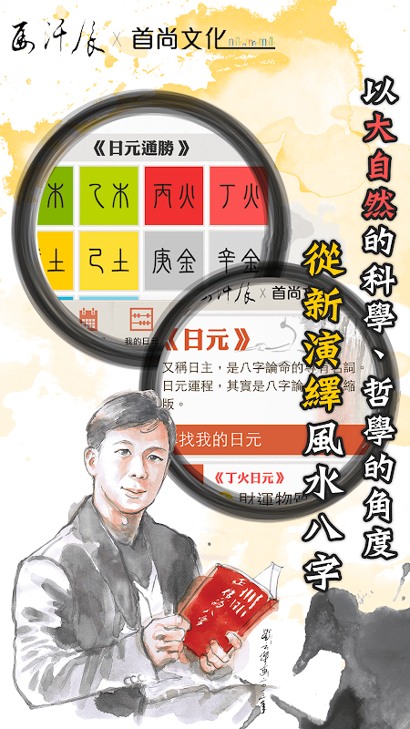 此app由香港電子書店首尚文化與命理堪輿學家馬汗辰合作開發,內容相當豐富,包括:八字排盤,日元每月運程,日元每日通勝,風水案例,八字命理解說,馬汗辰博客等等