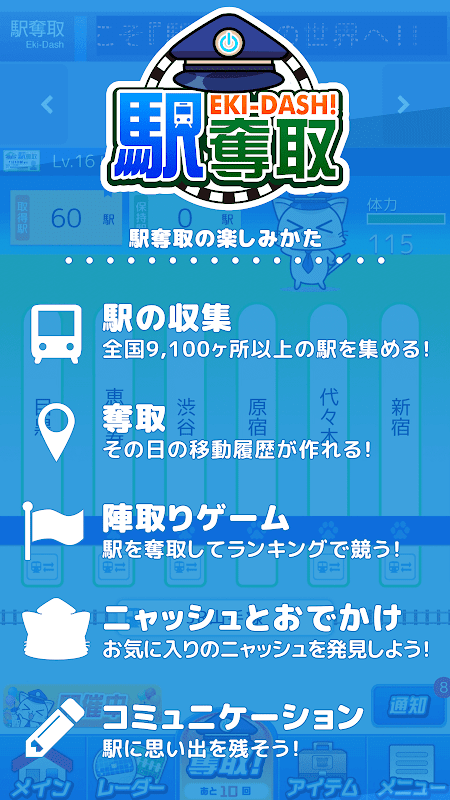 معلومات 駅奪取 駅猫ニャッシュと電車で旅する位置ゲーム APK