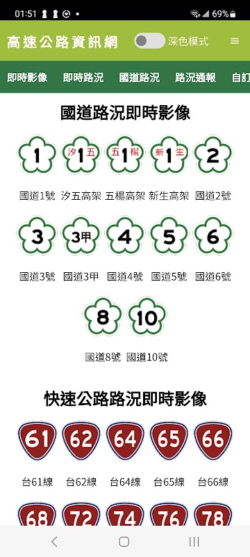 ظروف حركة المرور على الطرق السريعة الوطنية ، صورة في الوقت الفعلي