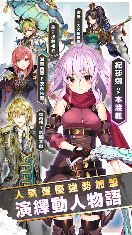 遊戲角色由江口拓也、小林裕介、五十嵐裕美、野水伊織、三澤紗千香、新垣樽助、大久保瑠美、石上静香、等日本人氣頂級動漫聲優全力配音,同時遊戲邀請到多位著名繪師包括「cuboon」、「卵の黄身」、「優木きら」、「柚希きひろ」、「谷裕司」為遊戲設計角 色及機體,從而注入靈魂生命賦予每一位的角色均擁有鮮明的個性與特質,從而打造扣人心弦的故事劇情與充實的遊戲內容!