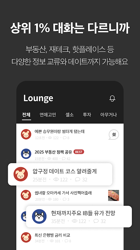 اجتاز 140.000 من أعضاء النخبة المختارين بعناية فحص صارم وتم تسجيلهم ، ويتم تشغيله بنظام عضوية بنسبة 100 ٪. من خلال المبادئ الثلاثة "الشهادة ، والقوة الاقتصادية ، واللقاء الصحيح" ، منذ إنشائها في أبريل 2018 ، حافظت على معدل نجاح في العضوية أقل من 30٪ وجمعت أعضاء تم اختيارهم بعناية من خلال فحص صارم.