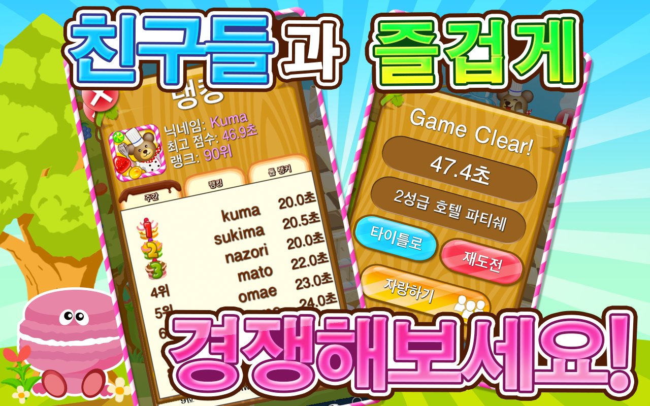 마카롱 3 형제를 누가누가 빨리 배부르게 했나를 두고 친구들과 경쟁할 수도 있어요.