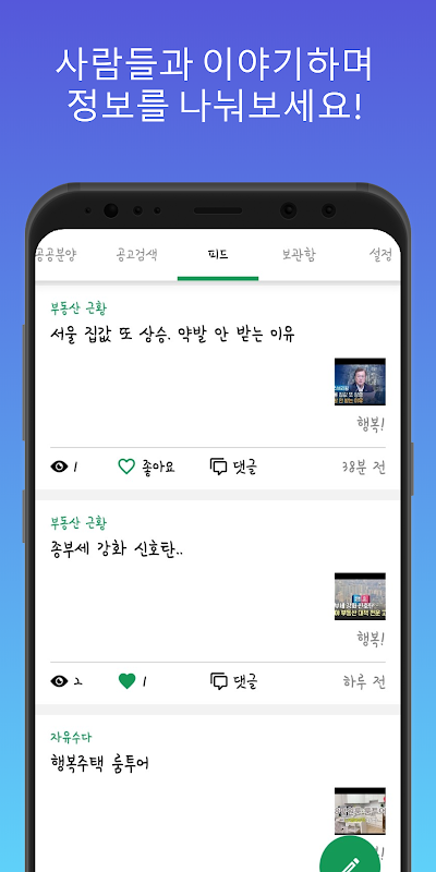 - 피드에서 공공 임대 및 분양 관련 이야기를 나눠 보세요