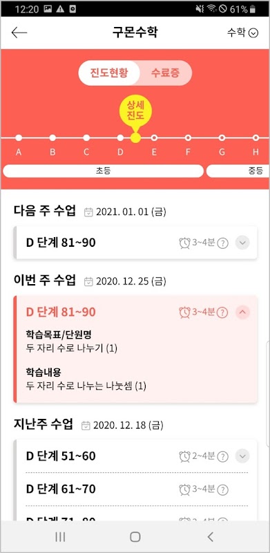 ∙ يمكنك التحقق من حالة التعلم بالتفصيل ، والمحتوى الذي تتعلمه حاليًا ومكان وجوده في جميع المراحل.