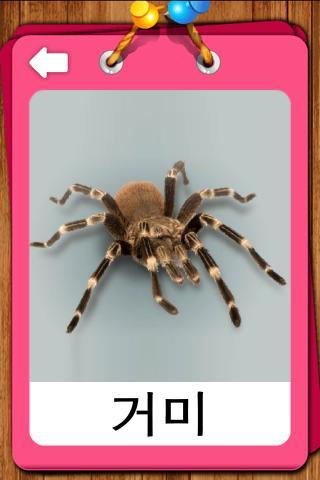 يمكنك تعلم الكلمات من خلال الصور والأصوات حية من 12 نوعا من فئة مختلفة (الحيوانات والنباتات، الخ) إلى أكثر من 300 كلمة، الهانغوليه، فضلا عن تأثير قتل عصفورين بحجر واحد، يمكنك الحصول على المكافأة التي يمكنك ان تتعلم من اللغة الإنجليزية. كلمة من خلال بطاقات كلمة خلال اللعبة التي تواجه (الهانغول كلمة الألعاب، ألعاب الكلمة الإنجليزية)، يمكن أن تتعلم أكثر من ذلك بقليل ممتعة.
