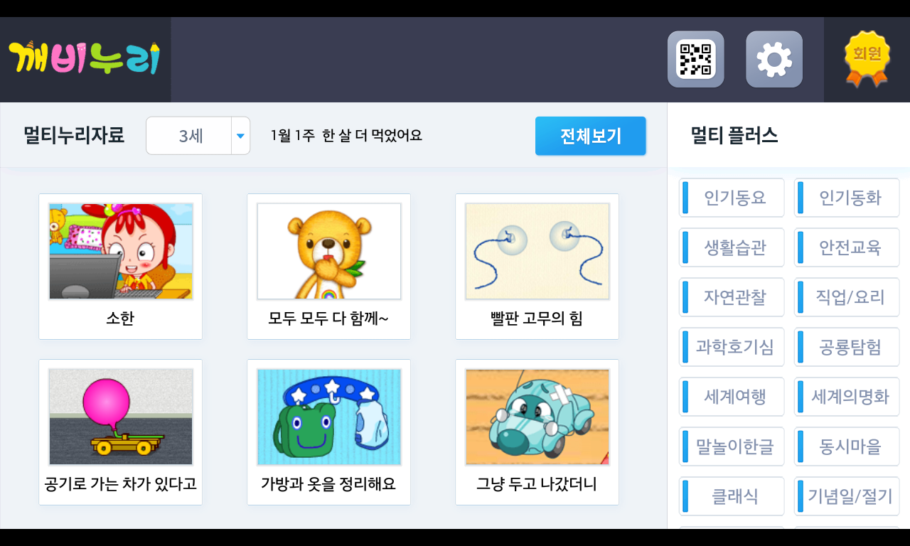 * 월별, 연령별로 선택적 학습이 가능하며, 매주 마다 다양한 주제로 학습할 수 있어요.