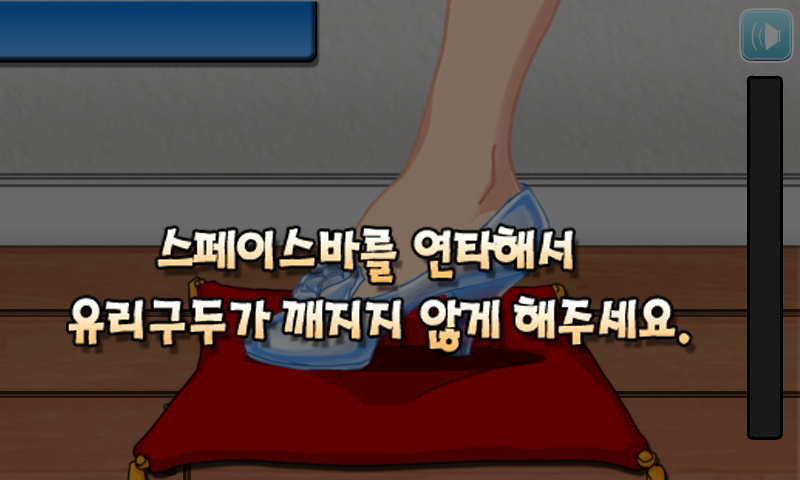스마트폰 화면을 열심히 눌러, 신데렐라가 유리구두를 신을 수 있게 도와주세요!