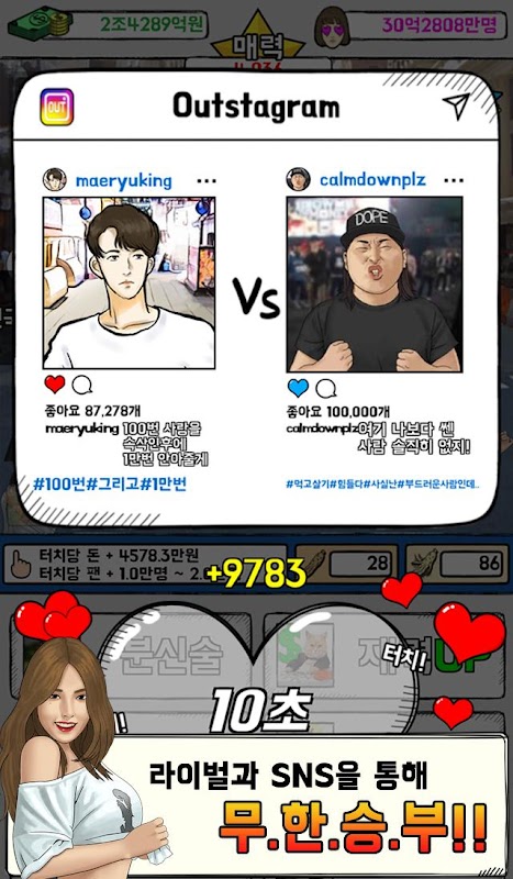 돈을 벌어보세요! 매력왕은 반(?)방치형 게임입니다.