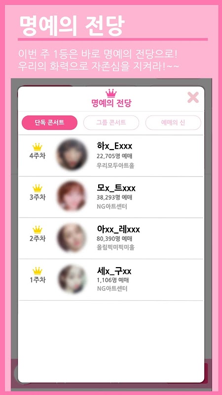 내 가수 랭킹(콘서트 예매-여자아이돌) 1.0.1