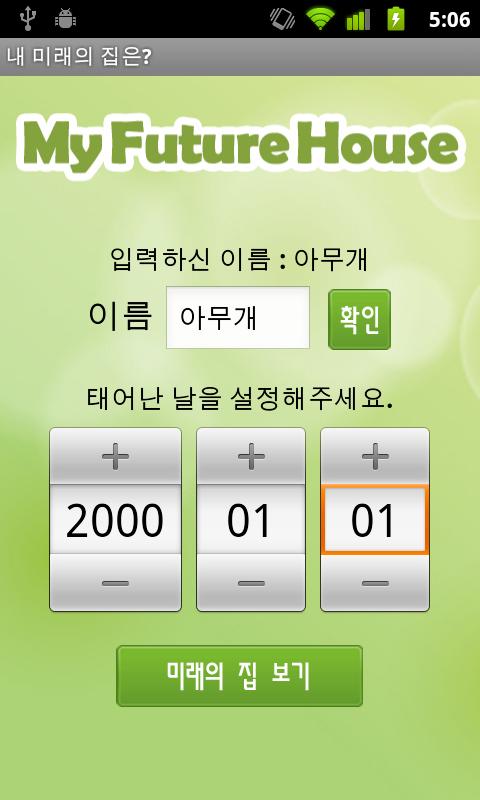 1. على الشاشة الأولى، قم بإدخال اسم وأدخل عيد ميلادي.