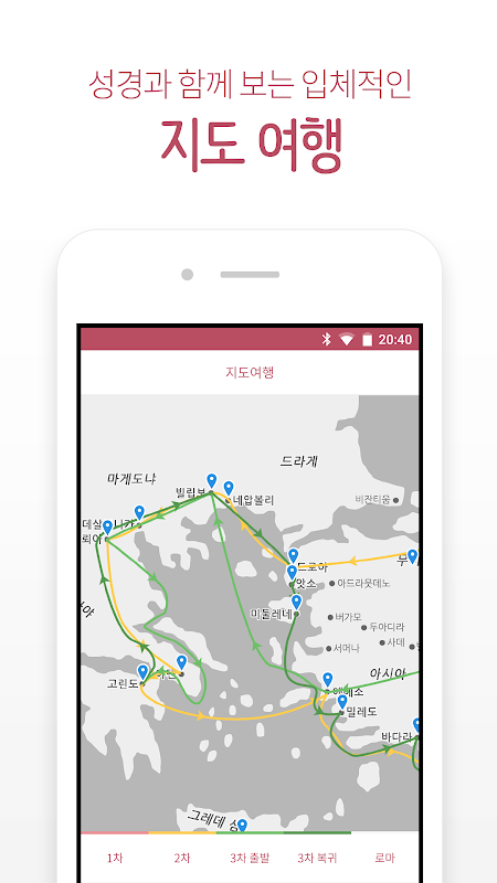 (2) "رحلة إبراهيم"، "نزوح رحلة"، "المنفى"، "يسوع" رحلة "،" رحلة بول "عند النظر في مسار الحركة، يمكنك عرض الموقع والمعلومات المتعلقة آيات الكتاب المقدس في كل مدينة.