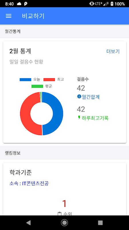 본 어플리케이션은 휴대폰 소지자의 걸음을 측정하여 보여 드리며, 측정결과값을 다른 학우 및 교직원들과 비교할 수 있도록 합니다.