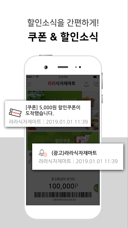 스마트폰으로 라라식자재마트의 다양한 혜택을 누려보세요.