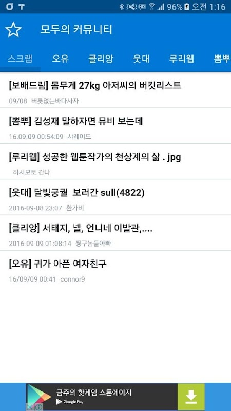 الإصدارات القديمة لـ 모두의 커뮤니티 - 오유, 클리앙, 보배드림, 뽐뿌