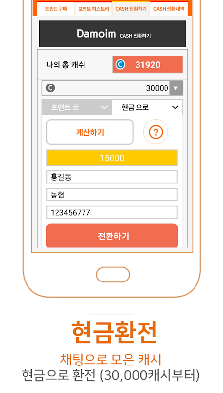 채팅으로 적립된 캐시는