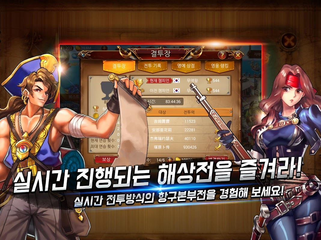 - 나만의 막강한 함대를 구축하고 육성하여 해적을 처치하는 재미 선사