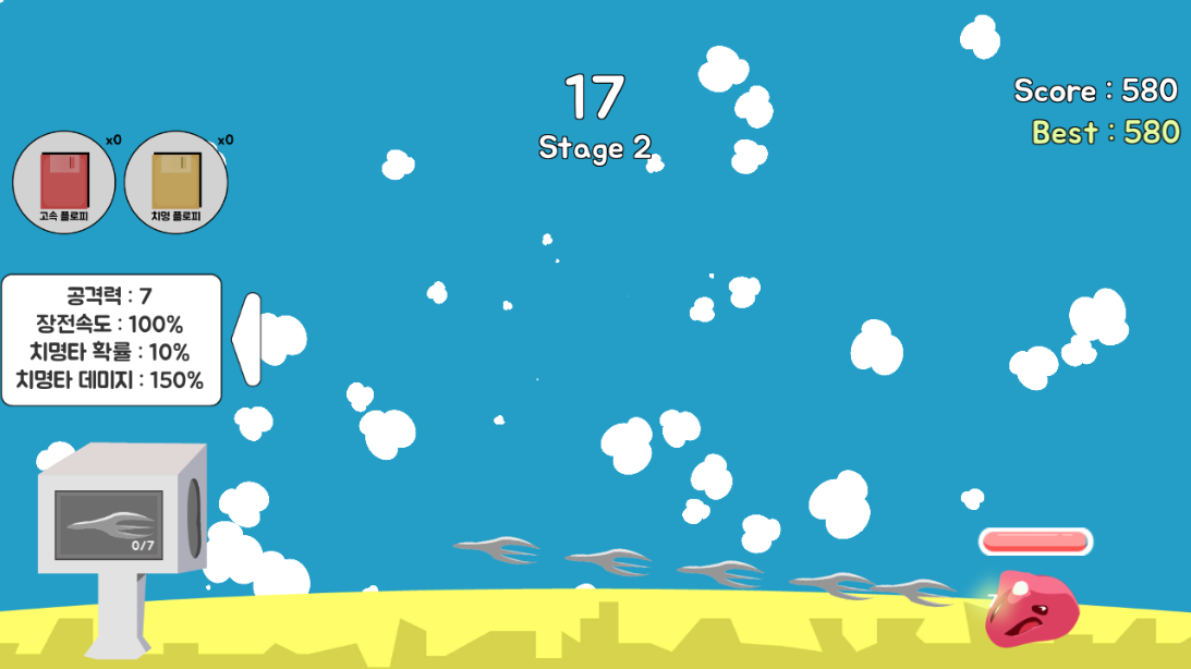 '미'사일 '연'속발사 '시'스템 키우기 ! 이 게임은 미사일을 발사하는 게임입니다.