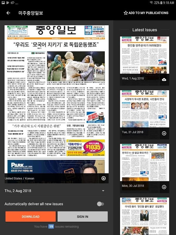 الإصدارات القديمة لـ 미주중앙일보 전자신문