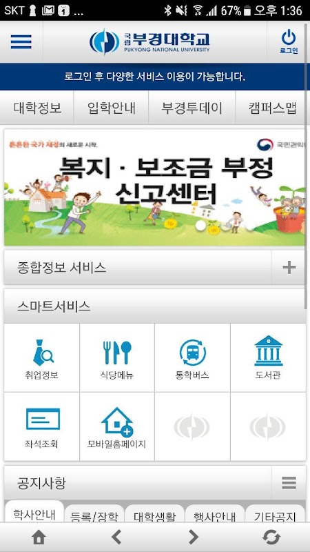 يشمل Pukyong الخدمات الإدارية BA / إلى نظام البوابة المحمول لطلاب المدارس / أعضاء هيئة التدريس.