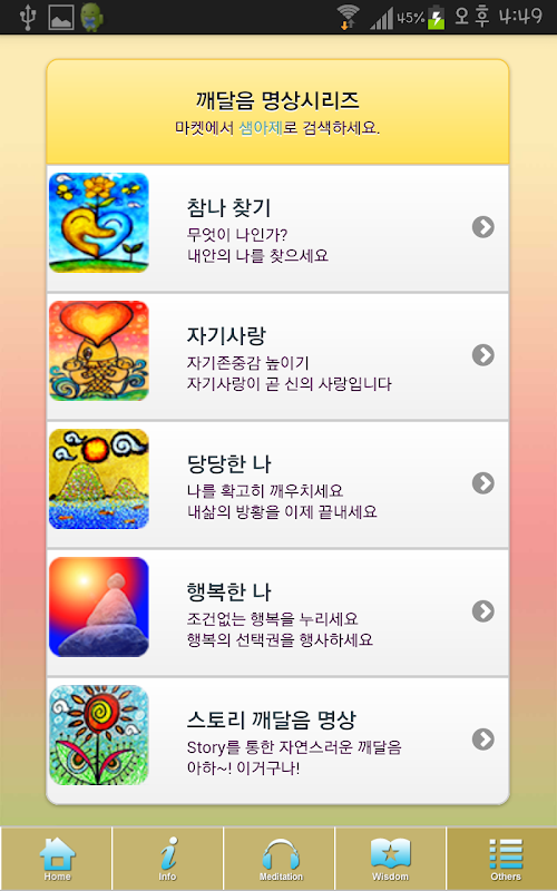 ◐ الراحة .. التأمل هو إعادة تسجيل للجزء الأمامي فقط من تطبيق Sam-Jae للتأمل لاكتشاف الذات.