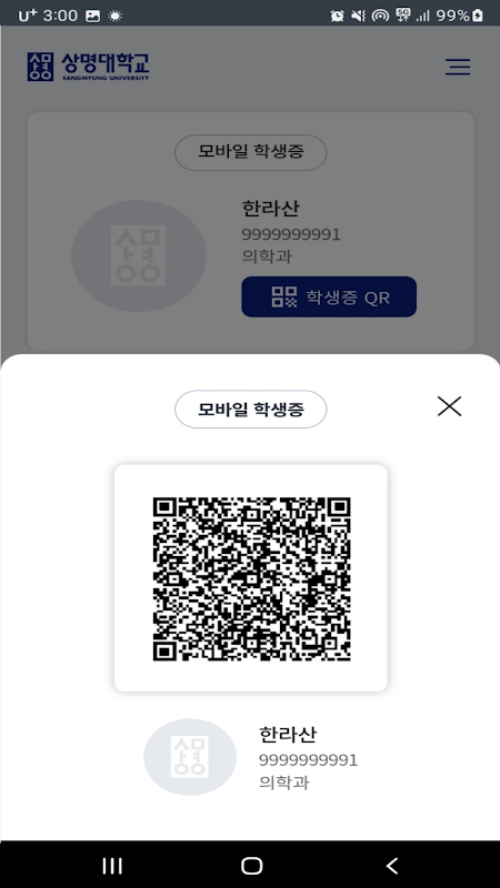 كمعرف محمول لأعضاء جامعة Sangmyung ، يمكنك استخدام التطبيق كمعرف الطالب (أو معرف) في المدرسة والمؤسسات ذات الصلة.