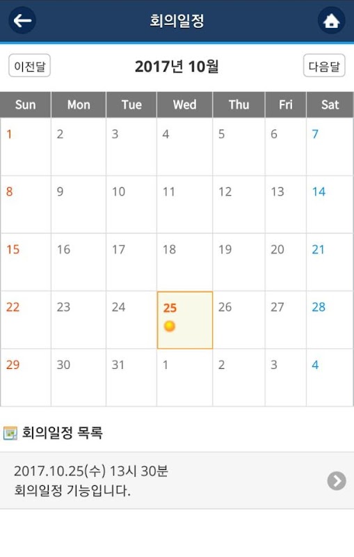 - 월별로 회의내용들을 확인할 수 있고, 회의에 참여 또는 미참여를 전송하여 회의에 필요한 내용들을 미리 준비할 수 있습니다.