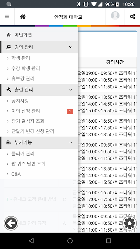 هذا هو تطبيق إدارة الحضور الإلكترونية الأساتذة المستخدمة من قبل جامعة مدينة سيول.