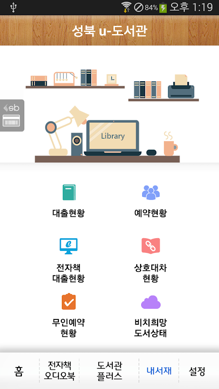في تطبيق Seongbuk u-Library، ما يلي