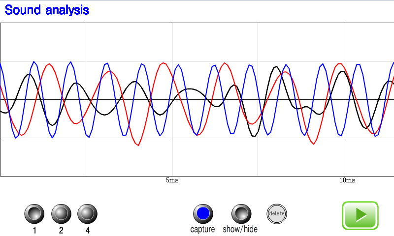 3. 두번째 소리를 발생시켜 첫번째 캡쳐한 화면과 비교해 본다. (필요에 따라 show/hide 버튼을 눌러 캡쳐한 화면을 안보이게 할 수도 있다.)