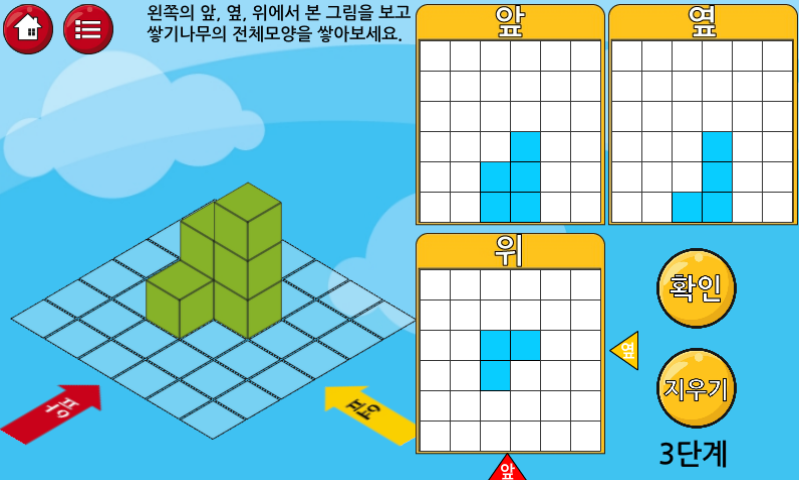 6학년 2학기 수학 1단원 쌓기나무를 학습할 수 있는 앱입니다.