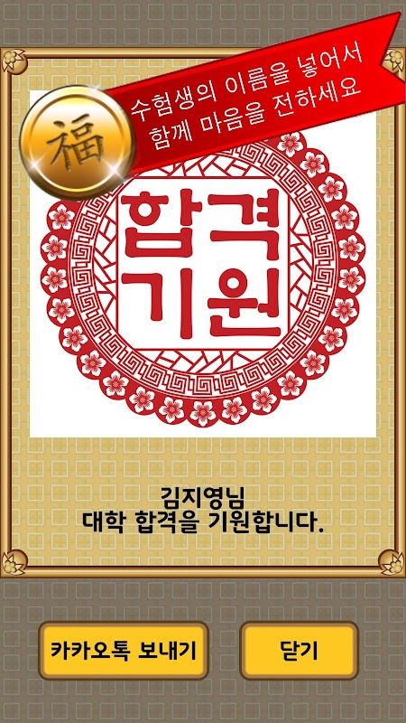 - 구입한 부적을 한번에 카카오톡을 통해서 수험생에게 전달하는 기능