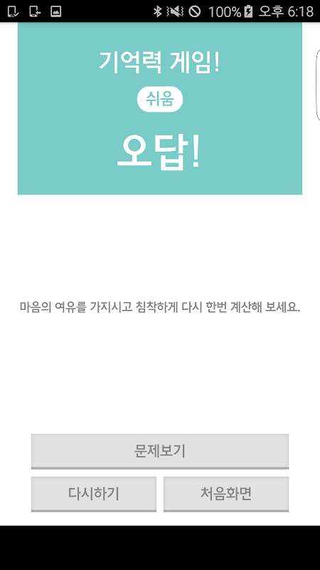 - 기억력 게임 : 차례로 나오는 10개의 숫자를 암산으로 풀어보세요.