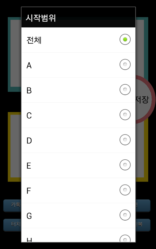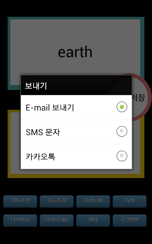 터치학습 - '터치저장' 버튼을 통해 눌려진 단어 반복 학습