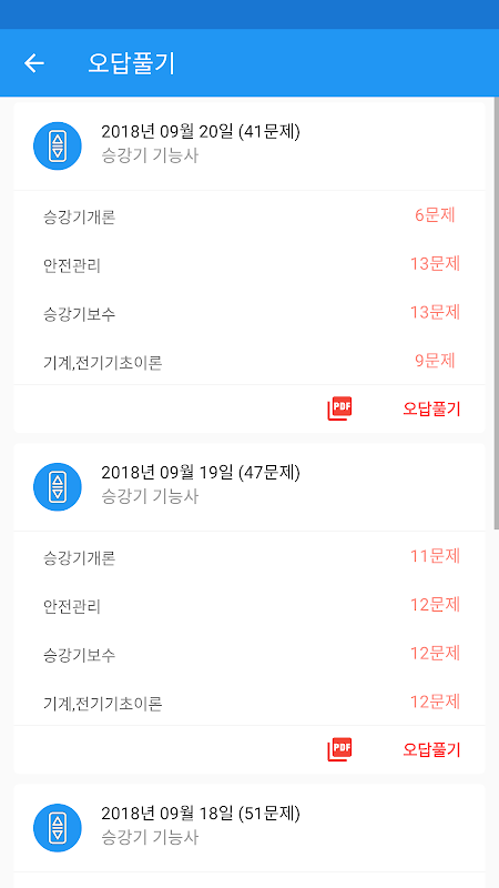 기출문제 - 각 시험별 기출문제를 풀어보는 메뉴입니다.