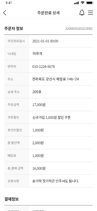 주문 상태 및 주문자 정보를 한눈에 확인 가능합니다.