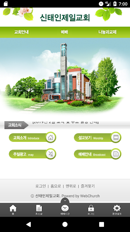 شين إن آني الكنيسة الأولى موبايل التطبيقيمكن استخدامه بسهولة على الهواتف الذكية عن طريق الربط التلقائي بالصفحة الرئيسية.