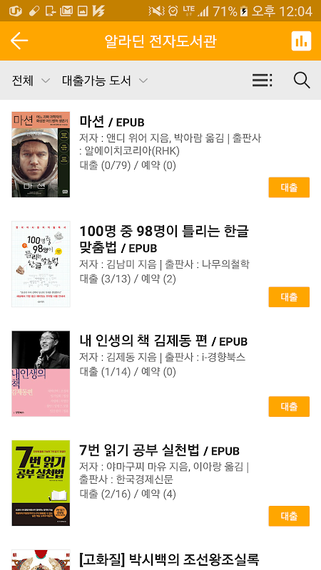 الإصدارات القديمة لـ 알라딘 전자도서관