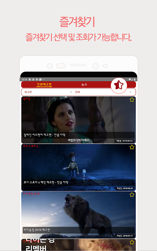 다시 보고싶은 동영상은 즐겨찾기로 조회 할 수 있습니다.