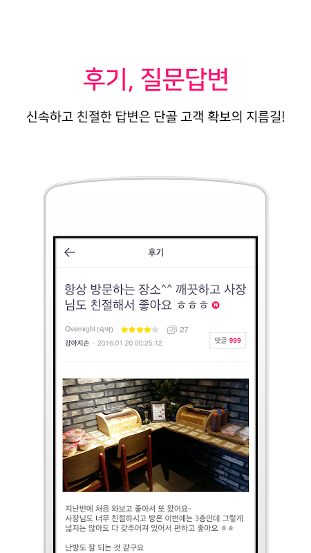 예약관리, 고객소통, 광고현황확인, 객실관리, 룸서비스요청 관리까지