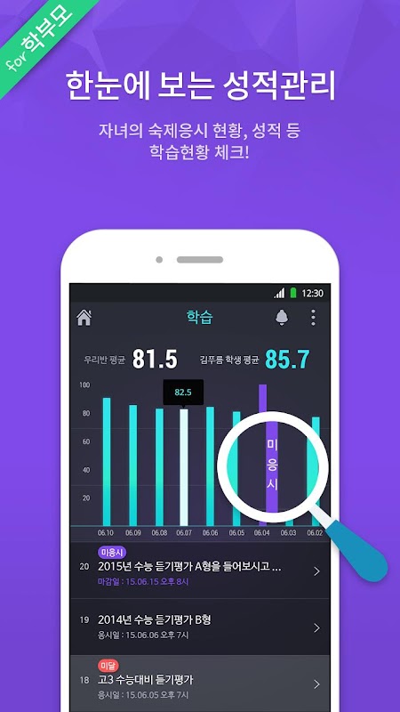 영어듣기평가 학습관리 프로그램!영어듣기평가 어플 1위, 하우투리슨의 학부모님용 버전으로 한 눈에 자녀 성적과 선생님 관리 현황을 집에서 확인