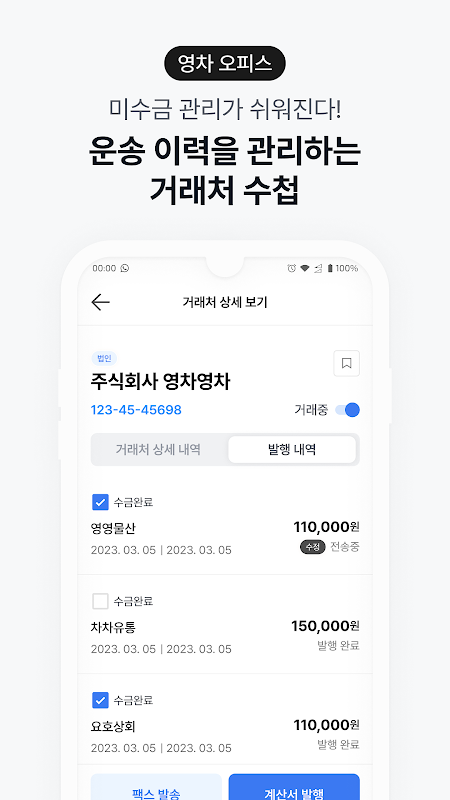 Yeongcha Yeongcha هي خدمة تتيح لمقترضي البضائع مشاركة المعلومات والمعرفة اللازمة لصناعة الشحن والتعامل بسهولة مع واجبات النقل مثل الفواتير الضريبية الإلكترونية وإدارة شركاء الأعمال.